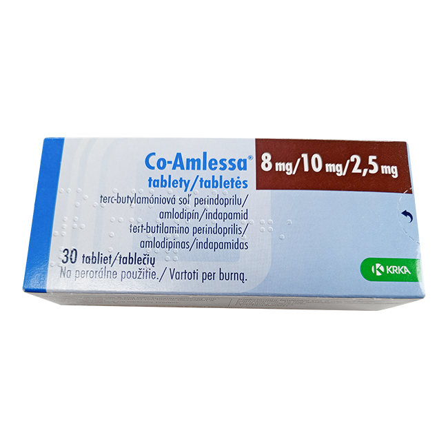 Каждая таблетка Ко-амлесса содержит 8 мг периндоприла, 2,5 мг индапамина и 10 мг амлопидина.