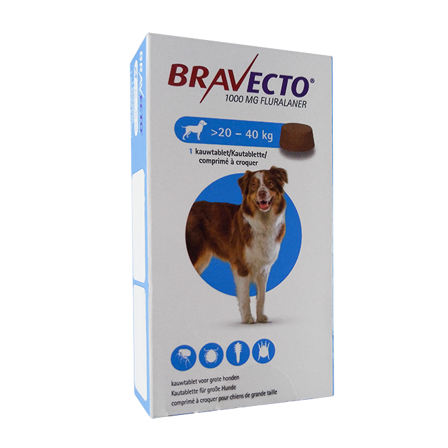 Бравекто для собак 20 - 40 кг ГЕРМАНИЯ! табл. жевательные 1000мг (для крупных пород) №1